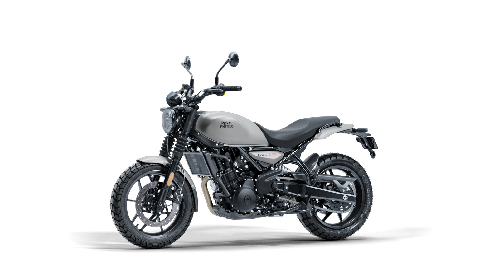 A Royal Enfield Guerrilla 450 é a roadster que une estilo, agilidade e autenticidade. Criada para a cidade, mas sempre pronta para a estrada, ela traz design minimalista, linhas modernas e a força do novo motor Sherpa 450. Com posição de pilotagem confortável e visual marcante, a Guerrilla representa uma nova geração: uma moto versátil, ousada e feita para quem vive a liberdade sobre duas rodas todos os dias.